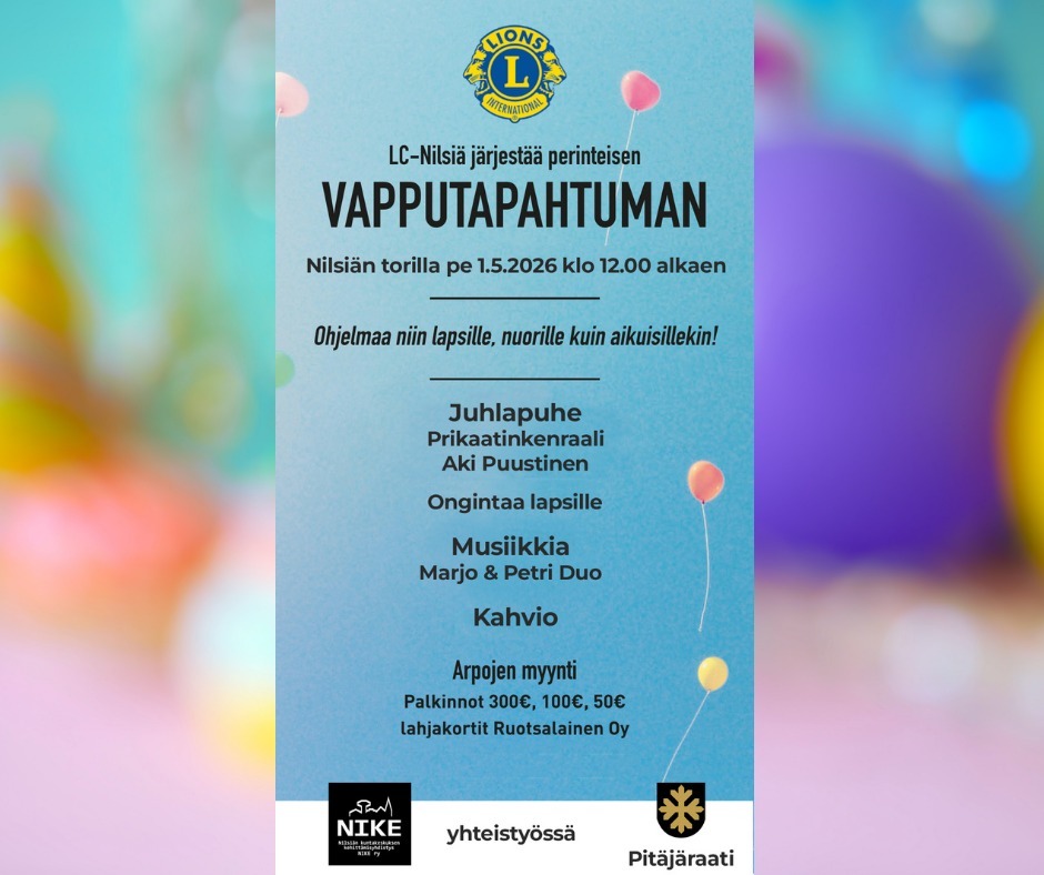 *Vappupäivänä jälleen LC Nilsiän järjestämä Vapputapahtuma 1.5.2026 klo 12 alkaen Nilsiän torilla.